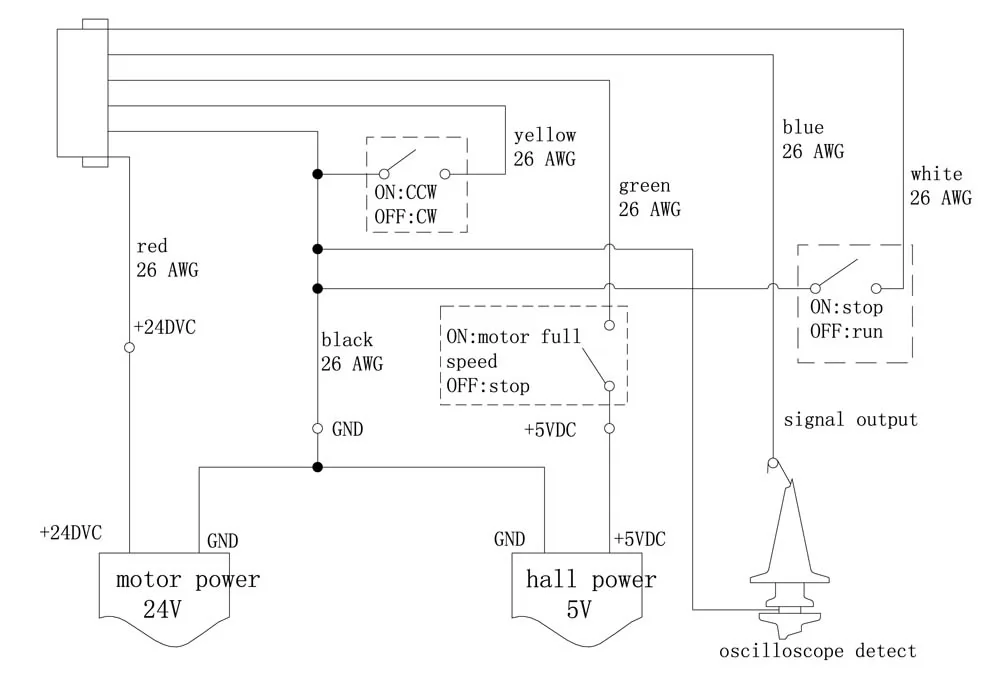 5)When the yellow wire Is connected to black one, the motor runs with CCW.