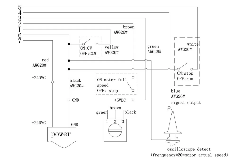 5) When the yellow wire is connected to black one, the motor runs with CCW.